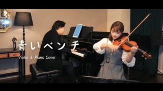 バイオリン 青いベンチ